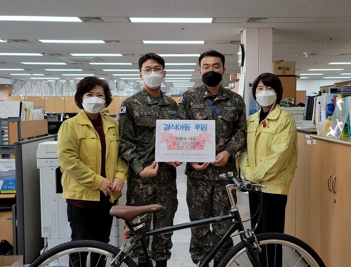 [로컬세계 부산=맹화찬 기자]해군작전사령부 1기동건설대대 공병중대는 지난 20일 부산사회복지공동모금회가 주최하는 희망 2022 나눔캠페인을 통해 자전거 1대와 성금 30만원을 부산 남구청에 기탁했다고 21일 밝혔다.