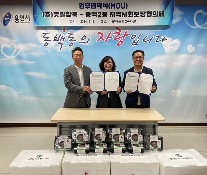 기흥구 동백2동 지역사회보장협의체는 지난 9일 ㈜맛깔참죽과 취약계층 어르신 지원을 위한 업무협약을 체결했다.