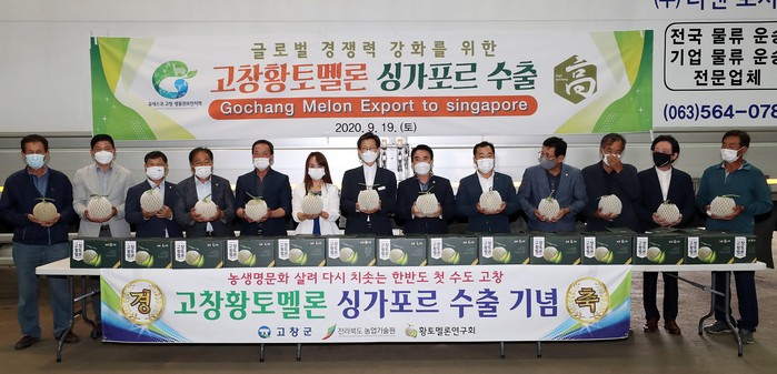 21일 고창군에 따르면 지난 19일 오후 고창군 농산물유통센터에서 ‘고창 멜론 싱가포르 수출 기념식’을 열고, 11월 말까지 항공편 2회와 선박을 통한 수출이 진행된다.