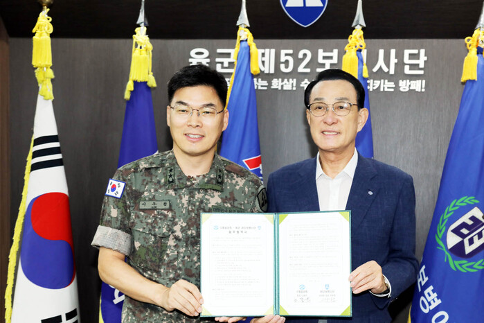 노동진 회장과 이우헌 소장은 6일 경기도 광명시에 위치한 52사단 본부에서 이 같은 내용의 업무협약을 체결하고 협력 관계를 강화해 나가기로 했다.