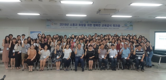 시에 따르면 지난 8일부터 9일까지 정남면 소재 YBM연수원에서 '소통과 화합을 위한 행복한 교육급식'을 주제로 130여 명의 관내 학교 영양(교)사, 학교급식관계자 등이 참석한 가운데 열렸다.
