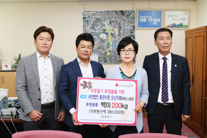 노용호 좋은이웃 오산지회 대표는 “어려운 여건에서 생활하고 있는 저소득층 가구들에게 작은 도움이 되고자 하는 뜻에서 백미 200kg을 기탁하게 됐다”며 앞으로도 소외계층 후원을 비롯해 사랑나눔 집수리, 문화사업, 무료급식 등의 나눔활동을 펼쳐나갈 것“이라고 전했다.