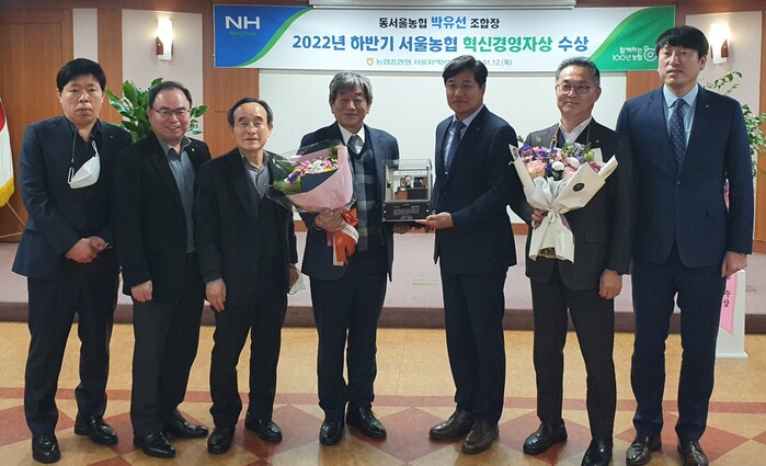 농협중앙회 서울본부(본부장 황준구)는 12일 동서울농협 본점에서 '2022년 하반기 서울농협 혁신경영자상' 시상식을 개최했다.