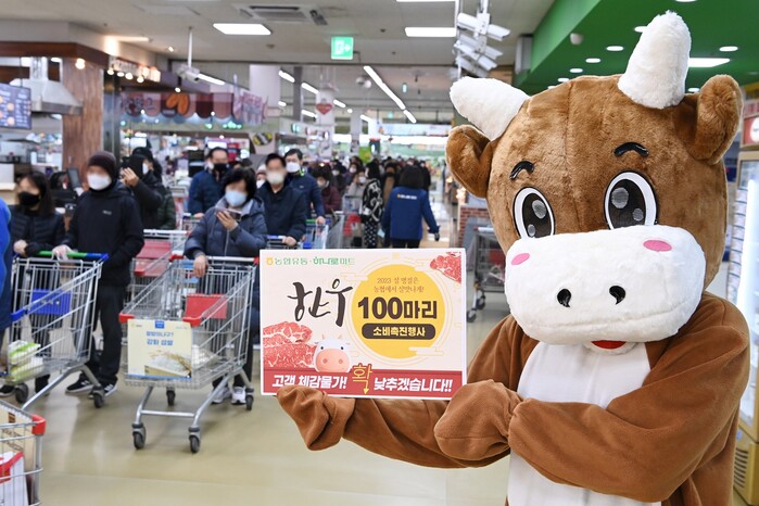 농협유통 축산팀 관계자는 “축산 농가의 안정과 함께 소비자 장바구니 부담을 줄이기 위해 ‘한우 100마리! 파격 할인 행사’를 준비했다”며 “앞으로도 한우자조금 행사, 한우소비쿠폰 행사 등 다양한 행사를 유치하여 생산자와 소비자 모두 만족할 수 있는 농협하나로마트가 되겠다”고 전했다.