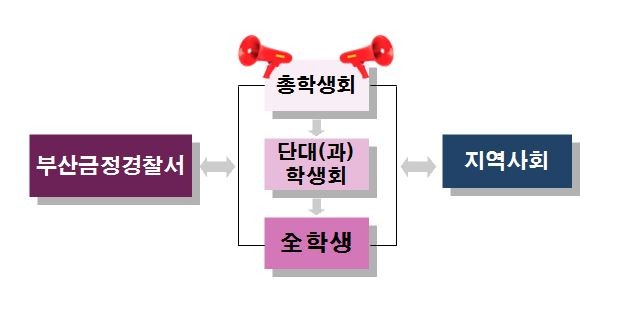 해당 대학기관 학생회는 지난달 부산금정경찰서에서 자체적으로 운영하고 있는 ‘행복바라기 서포터즈’ 정기회의 시 구성원들의 제안 의견을 바탕으로 ‘메가폰 학생회’를 구성했다.