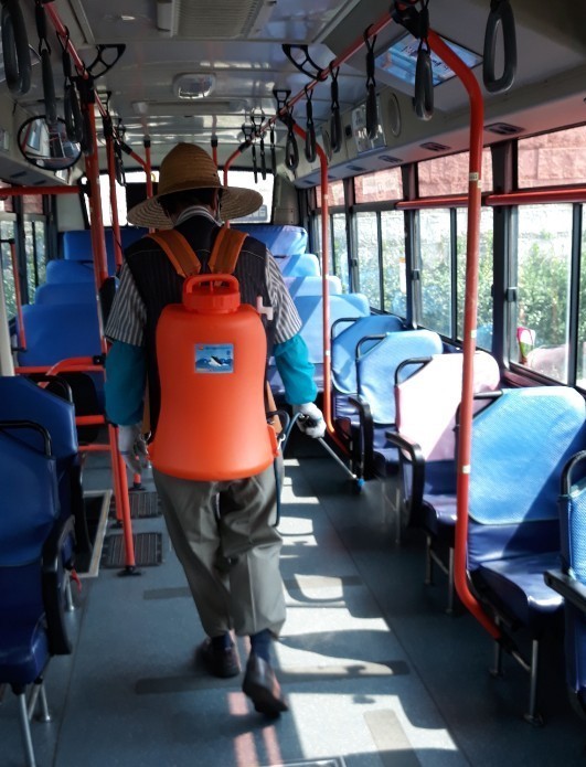 운수업체는 버스운행 중간 쉬는 시간에 휴대용 분무기를 이용해 수시로 버스내부 소독을 실시하고 있으며, 운행종료 후 모든 차량의 내·외부를 소독하는 등 방역예방 활동에 총력을 기울이고 있다.