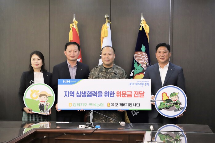 농협경제지주(농업경제대표이사 박서홍)가 23일 육군 제8기동사단을 방문해 군납농협-군부대 상생협력 강화 및 장병 사기진작을 위한 지역상생 협력행사를 개최했다.