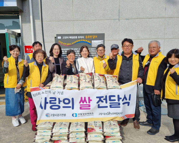 전달식을 통해 대화노인종합복지관·(재)고양시걷기연맹·고양상공회의소 여성기업위원회·사회공헌위원회는 취약노인 총 650세대에게 쌀 3,250kg을 전달했다.