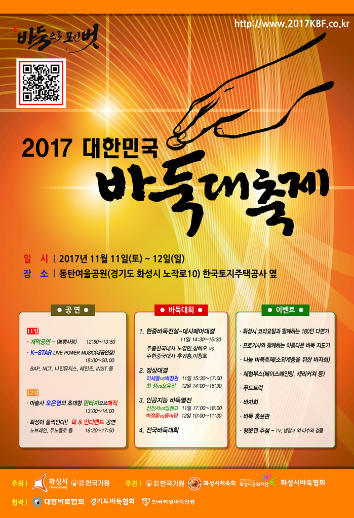 축제에 관한 자세한 내용은 ‘2017년 대한민국 바둑 대축제’ 홈페이지(http://2017kbf.co.kr)에서 확인할 수 있다.