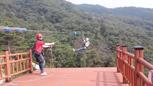 ▲ 용인특례시 자연휴양림의 대표 인기 시설 '짚라인'. 용인시 제공 |