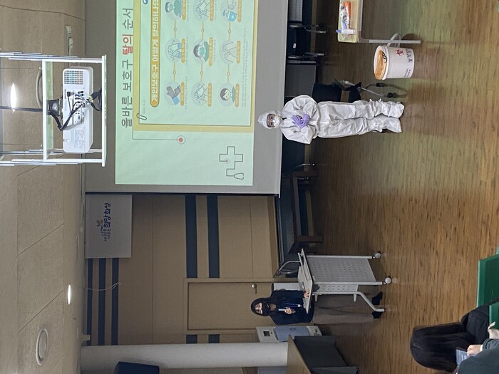 | ▲ 감염취약시설 감염관리교육을 하고 있는 모습. 화성시 제공 |