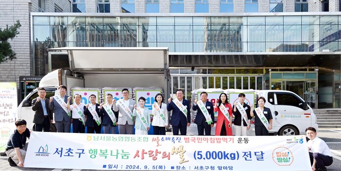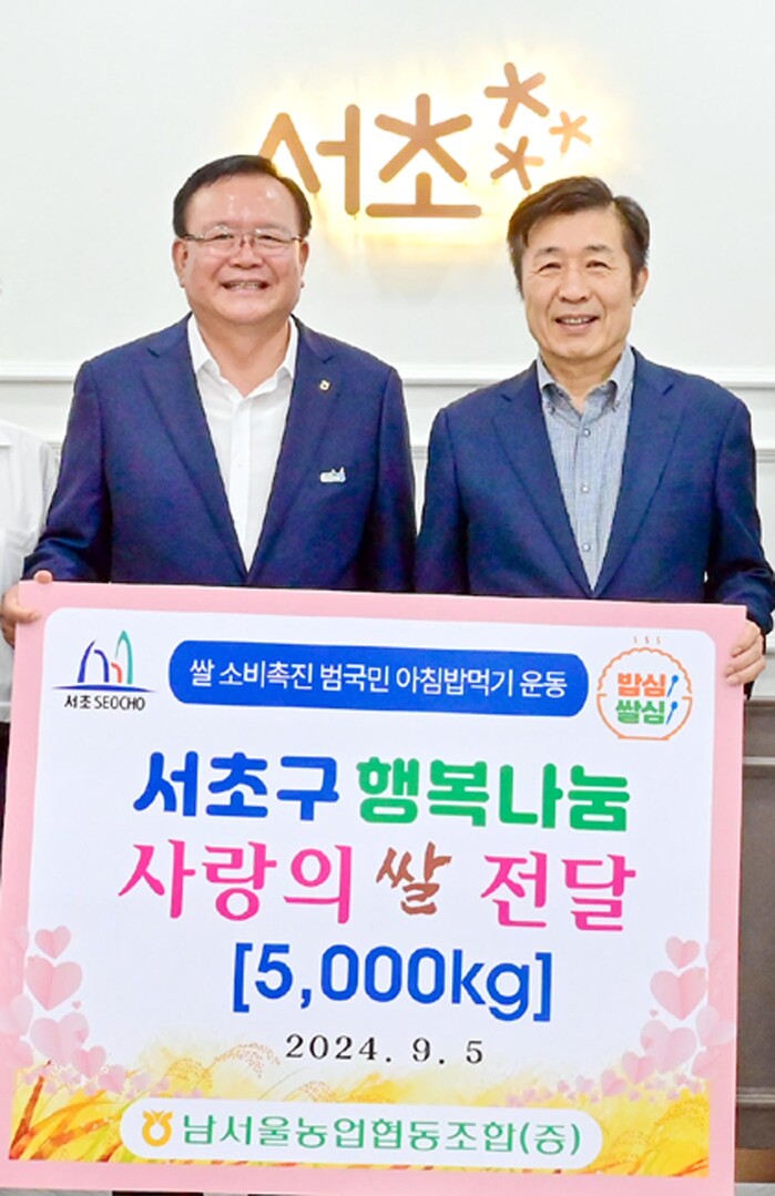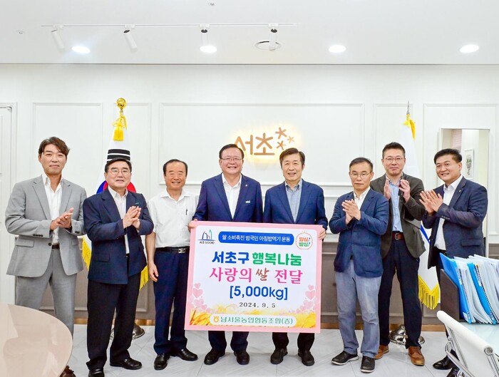 또한, 추석 명절을 맞아 지역사회와 상생하고 함께 성장하기 위하여 서초구청 전성수 구청장에게 경기 여주시 세종대왕농협에서 재배한 진상미 5,000kg(10kg*500포)을 전달하였다.