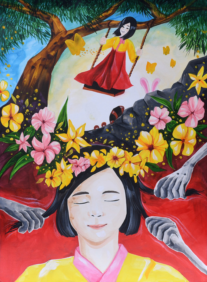 | ▲오산평화의소녀상 제3회 회화대전 최지현 학생 대상 수상작 ‘소녀의 꿈’.(오산시 제공) |