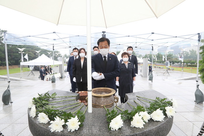 장현국 의장은 이날 오전 11시 현충탑 앞에서 헌화와 분향을 한 뒤 묵념하며 순국선열과 호국영령의 넋을 기렸다.