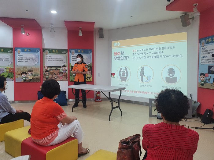 [로컬세계 맹화찬 기자]부산 금정소방서는 20일 금정 시니어클럽 노인일자리 어르신들을 대상으로 스포원 안전체험관 내에서 강력한 여름 폭염에 생기는 온열질환 대처를 위한 응급처치교육을 실시했다고 밝혔다.