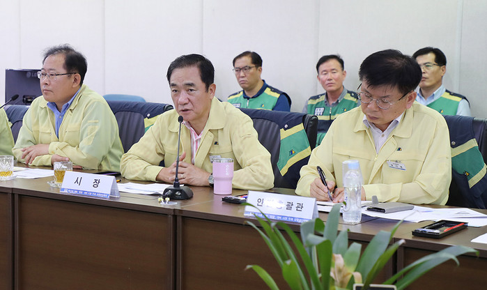 정장선 평택시장이 18일 오전 8시 시청 종합상황실에서 비전동 가스폭발사고 관련 긴급대책회의를 열고 “분야별 조속한 대책마련과 함께 부서별 실질적인 재난대응 훈련을 실시해 긴급한 재난 상황에 대비할 것”을 주문했다.(사진=평택시 제공)