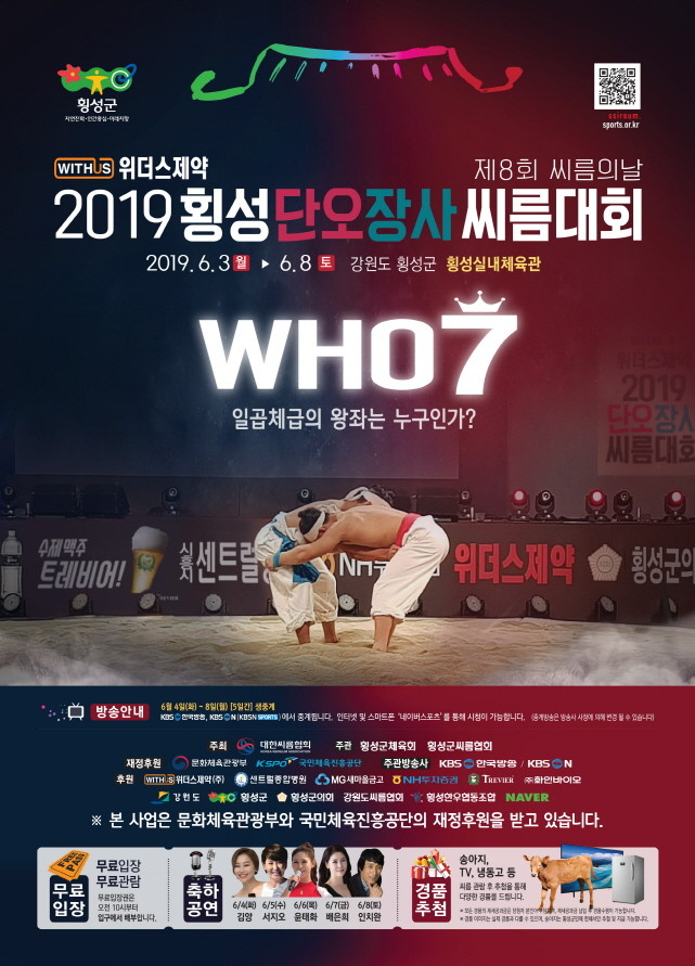 '2019 횡성단오장사씨름대회'에서 의성군청 소속 차승진 선수(백두급, 140kg이하)와 박정우 선수(태백급,80kg 이하)가 정상에 오르며 경사를 맞았다.