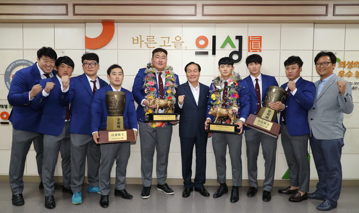 특히 의성군에서는 2019년 '작은 거인 - 윤필재' 선수를 영입하는 등 씨름단 지원에 투자를 아끼지 않아 '민속리그대회' 출범 이후 4회의 장사 타이틀을 획득하는 쾌거를 거두며 다시 한번 '씨름 고장 의성'의 명예를 빛내고 있다.
