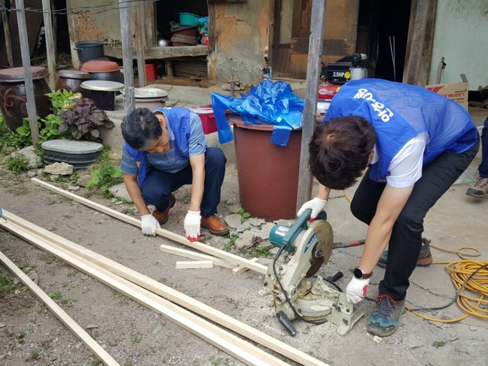 봉사자들은 낡고 비위생적인 도배·장판을 교체하고 파손된 벽체를 보강하는 등 35도가 넘는 무더위 속에서 구슬땀을 흘렸다.