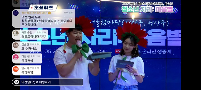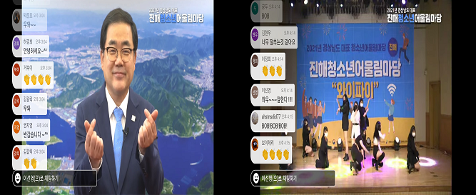 | ▲지난 22일 오후 2시부터 유튜브 채널을 통한 '2021년 창원시청소년어울림마당' 온라인 개막식 생중계 모습. 창원시 제공 |