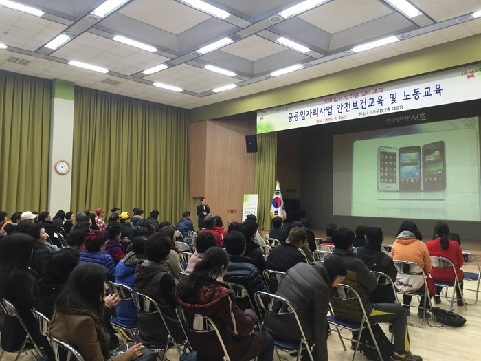 교육은 1부 안전보건교육과 2부 노동교육으로 나눠 1부는 산업안전보건공단 류재진 강사가 공공일자리 사업장에서의 안전사고 방지 준수사항 및 예방법에 대해 사례별로 강의한다.