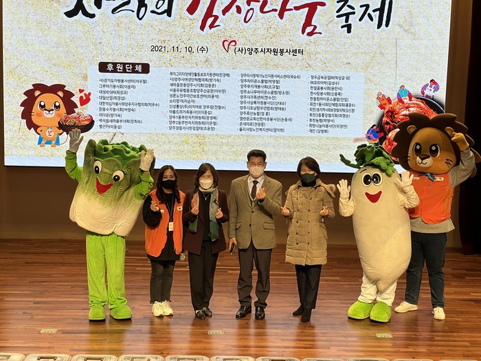 [로컬세계 이혁중 기자](사)양주시자원봉사센터(이사장 이성호)는 지난 10일 경기섬유종합지원센터에서 관내 소외계층을 위한 ‘2021 사랑의 김장나눔 전달식’을 개최했다고 11일 밝혔다.