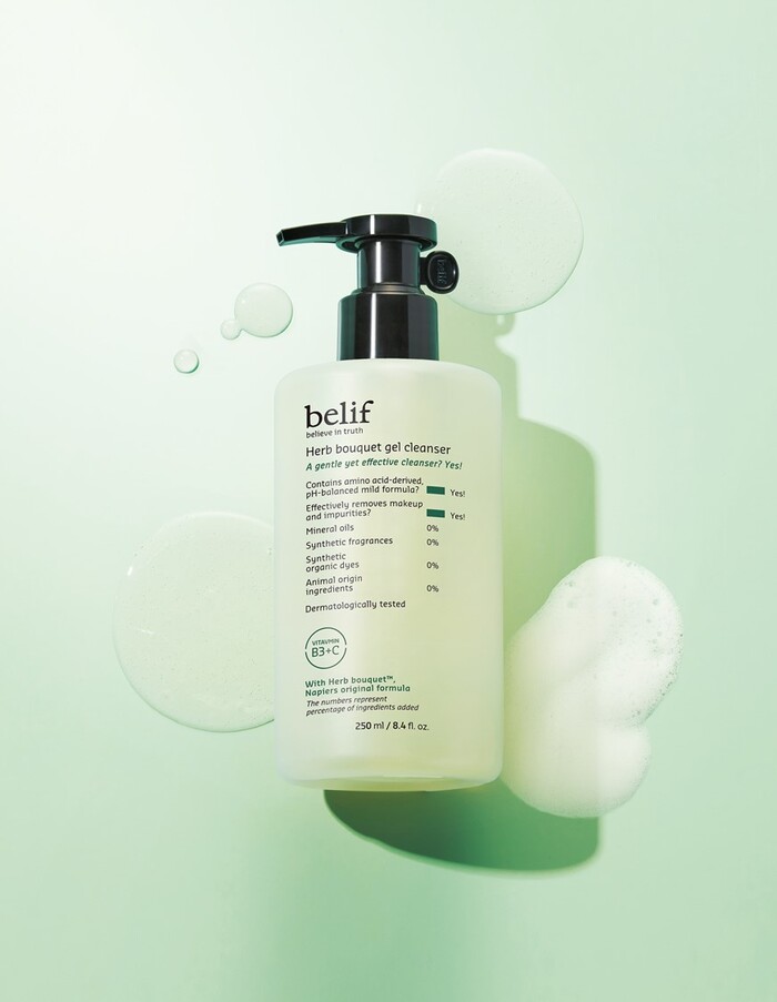 뿐만 아니라 ‘부케(bouquet)’처럼 화사하고 아름다운 피부로 가꿔주는 허브 부케™와 빌리프의 고유 성분인 네이피어스 오리지널 포뮬라를 함유하여 세안 후에도 당김없이 촉촉하고 매끈하게 마무리된다.