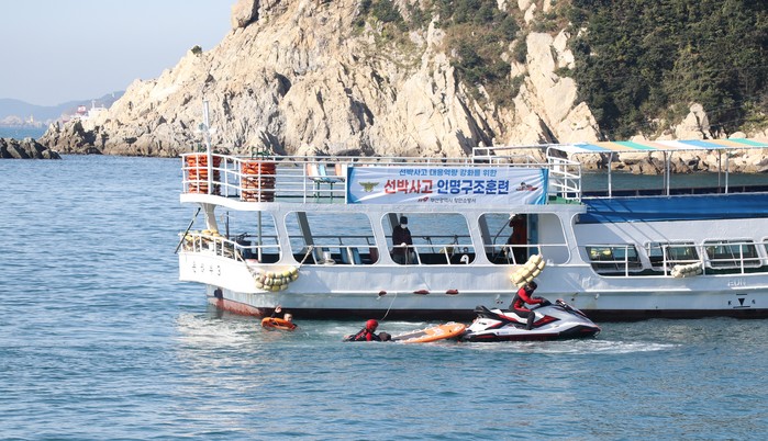 [로컬세계 맹화찬 기자]부산 항만소방서(서장 이준택)는 26일 영도구 감지해변에서 유람선을 동원하여 신속하고 효과적인 사고대응능력 향상을 위한 선박사고 인명구조 훈련을 실시했다.