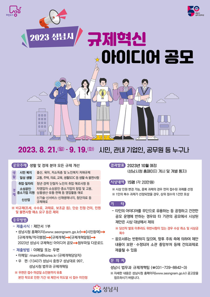 [로컬세계=김병민 기자]경기 성남시는 오는 9월 19일까지 규제혁신 아이디어를 공모한다.
