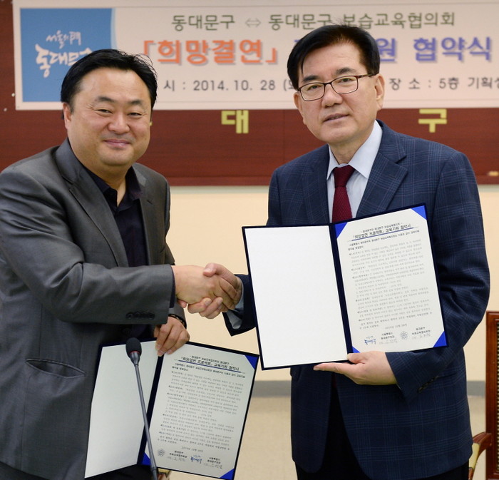 동대문구가 추진 중인 복지사각지대 주민 1:1결연사업인 희망결연 프로젝트의 활성화를 위해 결연대상자와 그 직계존비속 및 후원자와 직계존비속의 보습학원비 일부를 감면해 주기위한 협약이다.
