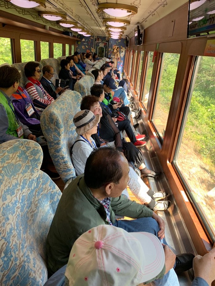▲바다열차를 타고 관광을 즐기고 있는 어르신들 모습. |