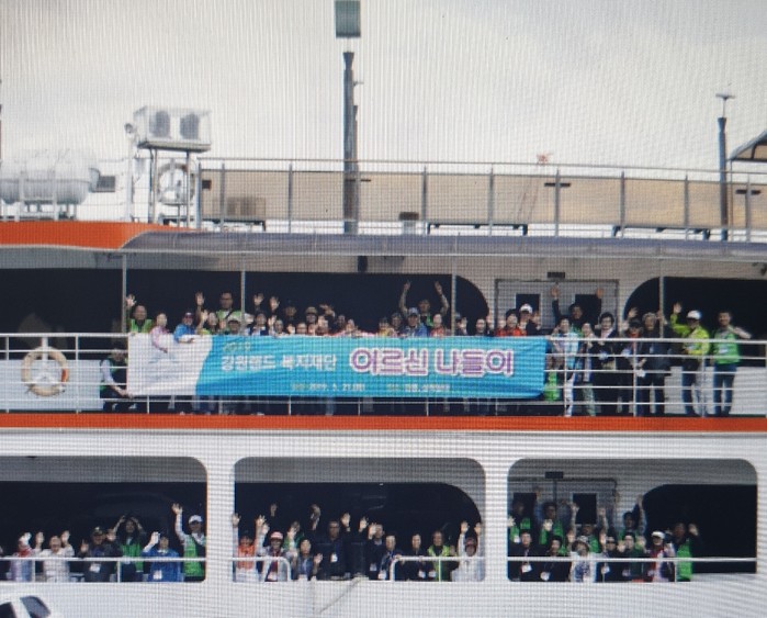 ▲해상관광크루즈를 탑승한 어르신들 모습.(강원랜드 제공) |