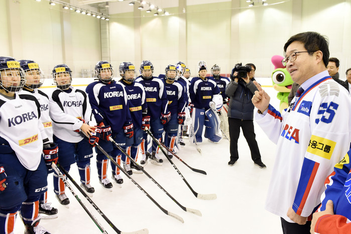 | ▲지난 11월 1일 열린 여자아이스하키팀 임용식 사진. |