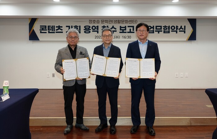 이날 협약식에는 김대권 수성구청장, 정호승 작가, 배선주 수성문화재단 대표이사가 참석해3자 상호 협력을 약속했다.