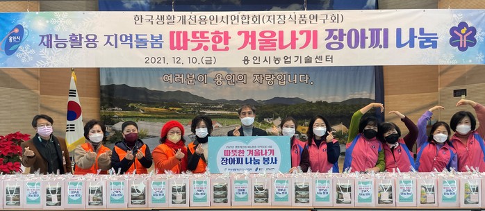 [로컬세계 김병민 기자]경기 용인시는 10일 한국생활개선 용인시연합회 소속 저장식품연구회원들과 연합회 임원 등 여성농업인 25명이 장아찌 450통을 담가 홀로 어르신 등 취약계층 150가구에 전달했다고 밝혔다.