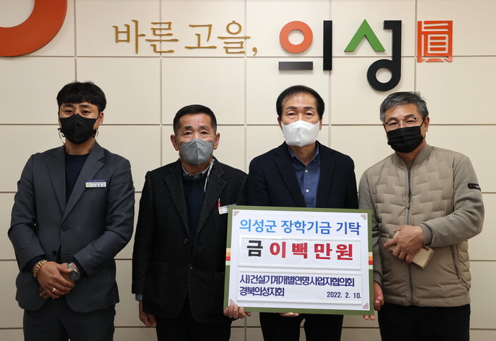 [로컬세계 박상진 기자]경북 의성군 건설기계개별연명사업자협의회(협회장 김주현)는 지난 10일 의성군청을 방문해 지역의 교육발전과 인재육성을 위한 장학금 200만원을 의성군 인재육성재단에 기탁한다고 전했다.