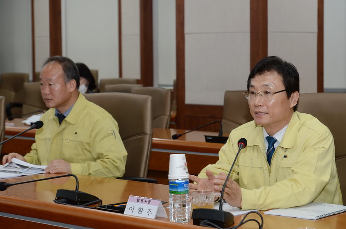 ▲20일 이환주 시장이 남원시청 회의실에서 전문가, 관계자 등 20여 명이 참석한 가운데 '화장품 지식산업센터 설계용역 중간보고회'를 주재하고 있다.(남원시 제공) |