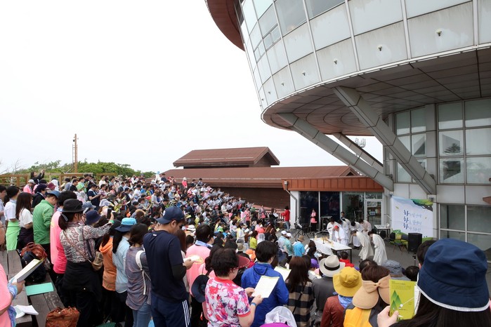 [로컬세계 박상진 기자]하이원리조트(대표 문태곤)는 6일 염수정 추기경을 비롯한 천주교 서울대교구 명동대성당 신자 500여 명이 하이원리조트를 방문해 해발 1,340m인 하이원탑에서 미사를 봉헌했다고 밝혔다.