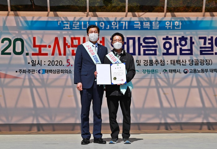 이 자리에서 류태호 태백시장은 “코로나19의 어려운 여건 속에서 지역경제위기 극복을 위한 노력과 노사 간 상생 노사관계 정착을 위한 소통과 협력으로 더욱 발전하는 노사민정이 되길 바란다”고 말했다.