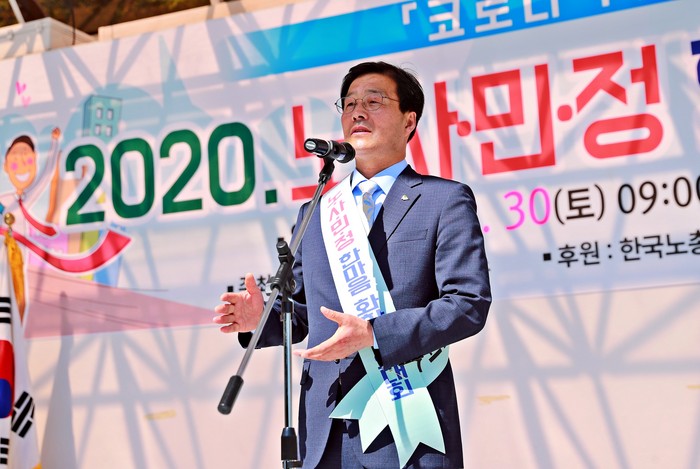 특히 이날 결의대회는 모범 관리자, 근로자, 공직자에 대한 표창, 코로나19 위기극복 및 지역경제 발전을 위한 결의문 낭독과 노사민정 대표의 공동선언, 근로자 대표의 구호제창 등의 순서로 진행됐다.