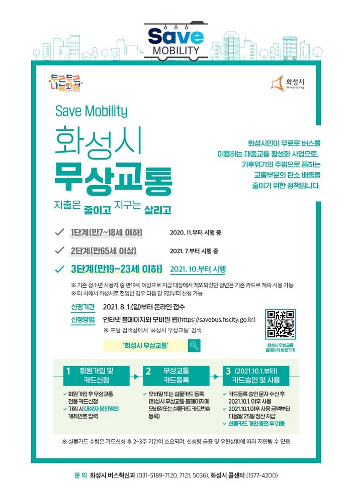 [로컬세계 고용주 기자]경기 화성시가 다음달 1일부터 만 19세~23세 청년까지 무상교통을 확대한다.