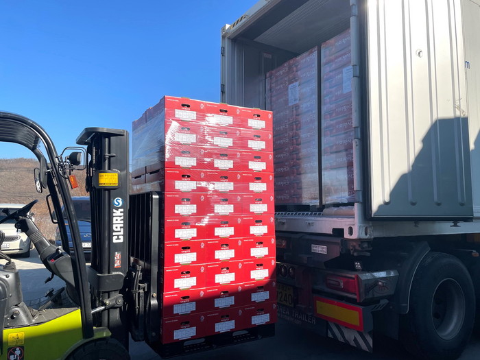 [로컬세계 박상진 기자]경북 의성군은 농업회사법인㈜이슬마루와 함께 13일 의성사과를 싱가포르로 보내는 새해 첫 수출 선적식을 진행했다고 밝혔다.