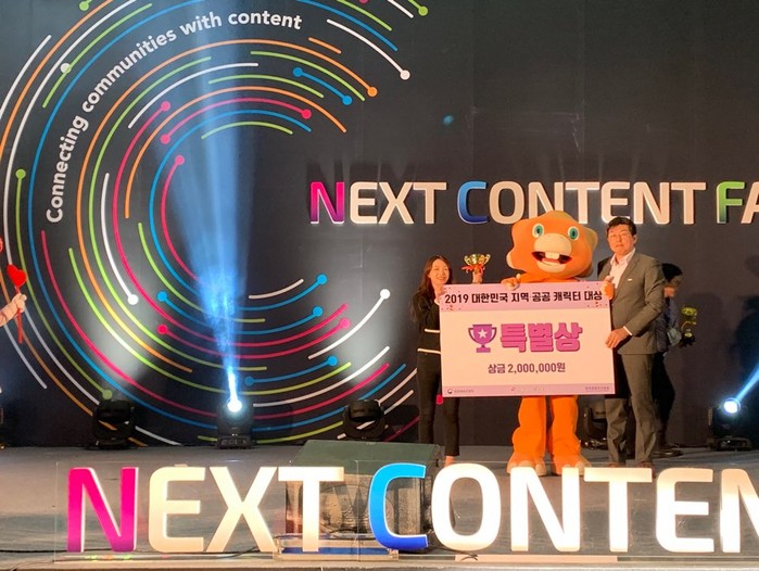 | ▲6일 부산벡스코에서 열린 ‘우리동네 캐릭터’ 시상식에서 특별상을 수상한 코리요.(화성시 제공) |