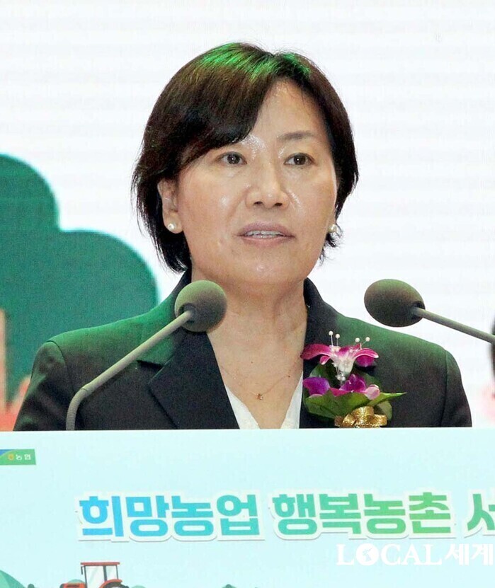 송미령 농림축산식품부장관이 축사를 하고 있다. 농협중앙회는 24일 서울 중구 농협중앙회 본관에서 도시와 농촌을 잇고 농업·농촌의 가치를 알리는 '희망농업 행복농촌 서포터즈' 발대식을 개최했다.