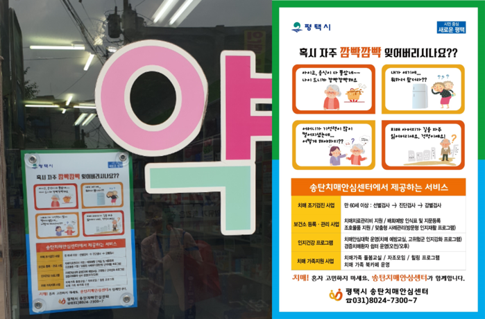 2일 평택시에 따르면 의료기관 및 약국 등에 배포되어 비치된 배너에는 시민들이 보기 좋고 이해하기 쉽도록 만화를 통해 시각적 효과를 높였으며, 송탄치매안심센터에서 제공하는 서비스에 대한 내용을 전달하고 있다고 밝혔다.