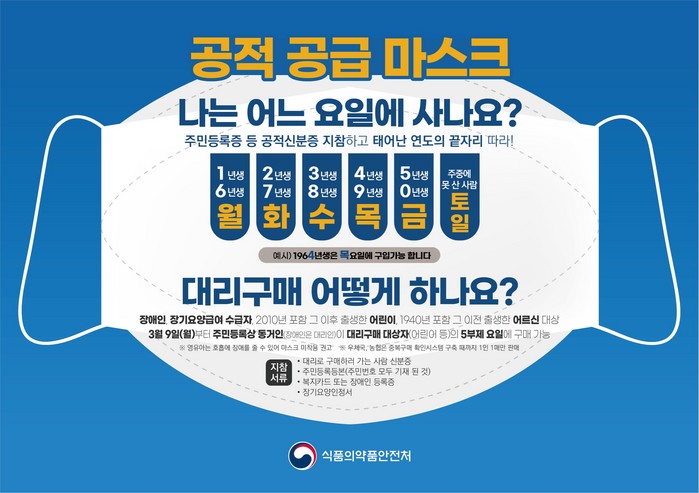 한편 9일부터 시행되는 ‘마스크 5부제’로 마스크를 사려는 군민들은 본인이 직접 방문해(만 10세 이하 등 일부 대리구매 가능) 주민등록증, 운전면허증, 여권 등 공인신분증을 제시해야 하며 약국의 경우 중복구매 확인시스템을 통해 주 1회 2매만 구매할 수 있다.
