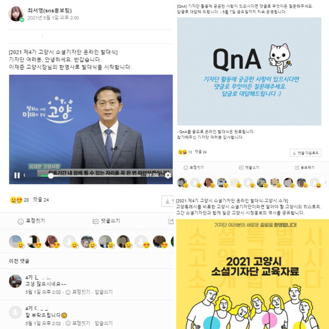 한편, 고양시 소셜기자단은 2017년부터 지금까지 275명이 활동했다. 역대 고양시 소셜기자단의 생생한 기사는 고양시 공식 네이버 블로그에서 확인 할 수 있다. 또한, 고양시는 약 47만 명의 SNS 팔로워 수를 보유하고 대한민국 인터넷소통 분야 대상을 꾸준히 수상하는 등 SNS를 활용한 시민소통의 모범사례로 평가받고 있다.