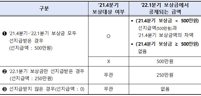 아울러 지난 1~3월 손실보상 선지급을 받았거나 지난해 3분기 손실보상금 정산 대상자로 지난해 4분기 보상절차가 진행 중인 사업체는 정산결과가 확정된 이후에 올해 1분기 손실보상을 신청할 수 있다.