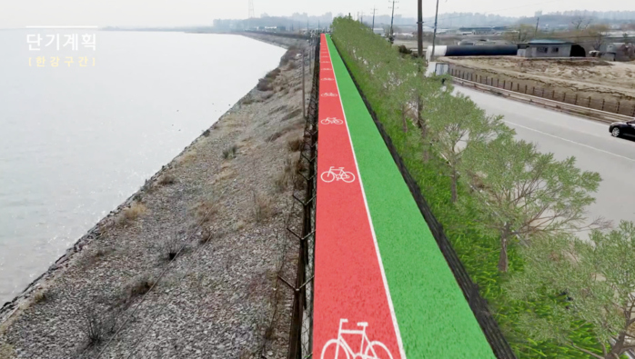 한강구간은 일산대교에서 전류리포구까지 8.7㎞의 2중 철책 중 도로변 철책을 철거 후 50여 년 간 민간인 통제구역이었던 군 순찰로를 활용해 자전거도로와 산책로를 조성한다.