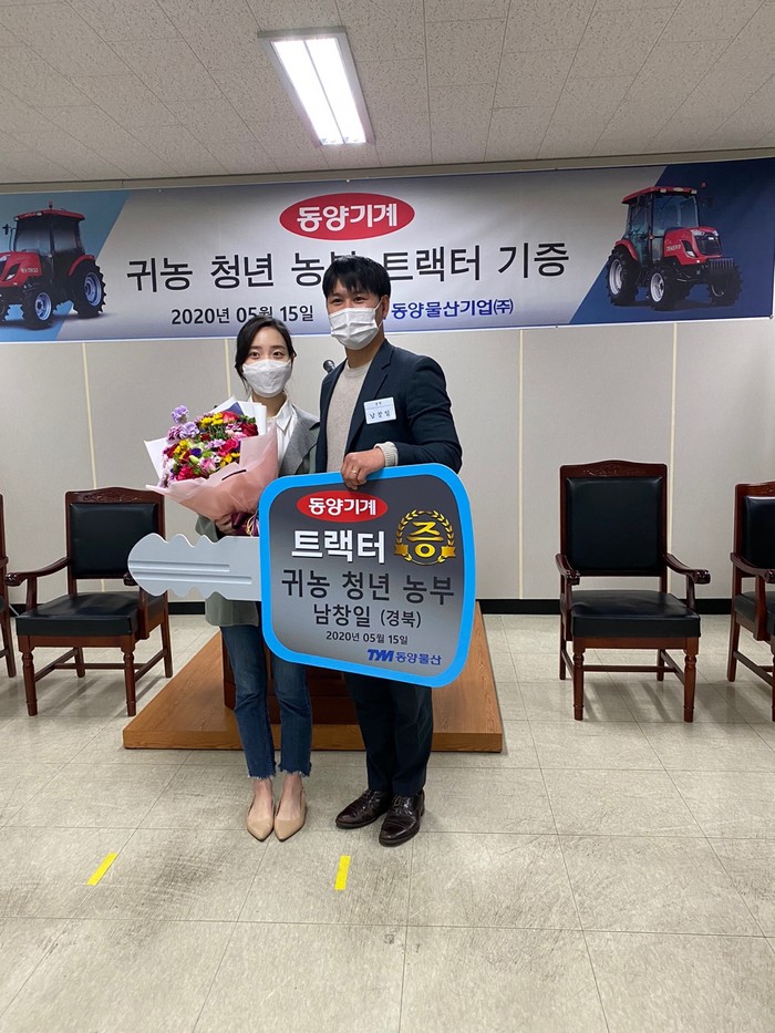 | ▲㈜동양물산 프로모션 기획의 일환인 꿈을 키우는 청년 농부들을 위한 ‘트랙터 지원사업’에 남창일씨 선정.(의성군 제공) |